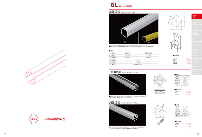 hk星空体育 薄壁基础铝管 43基础铝管 加强铝管 单边铝管